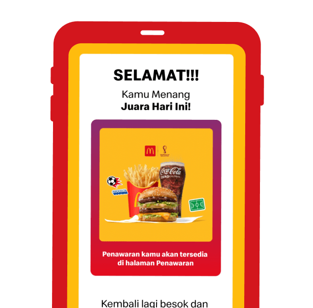 Main Score & Win dan dapatkan penawaran spesial setiap harinya di Aplikasi McDonald’s
